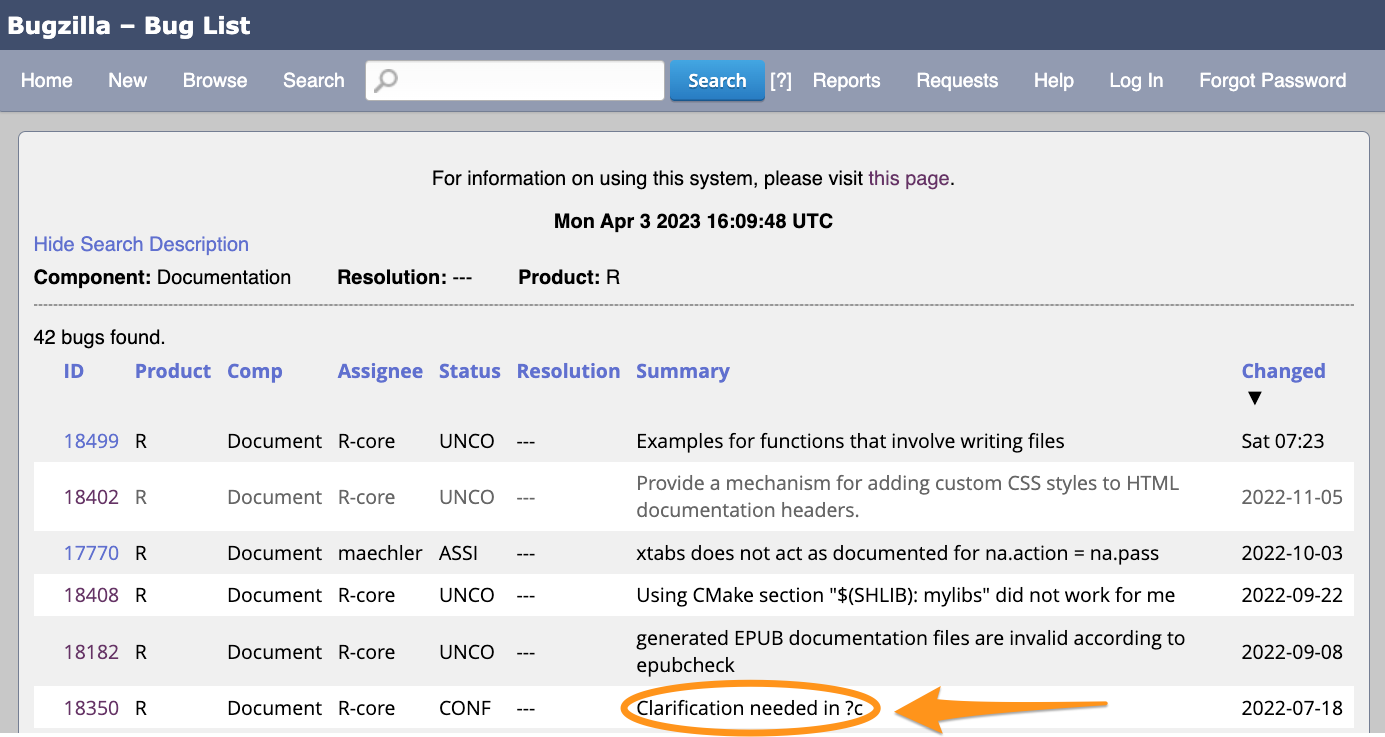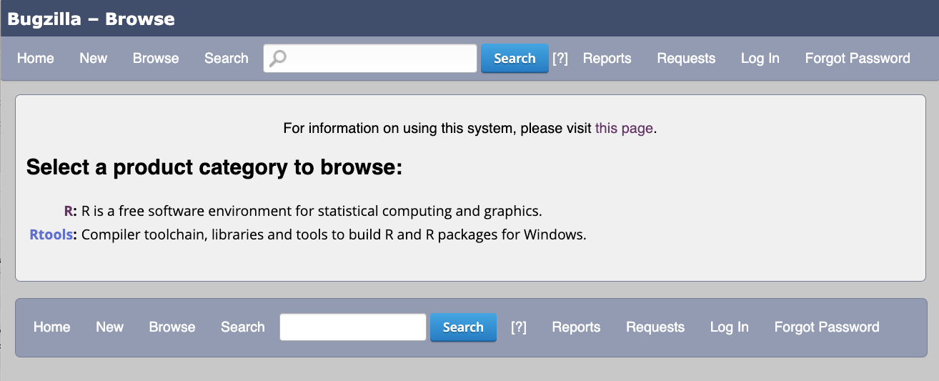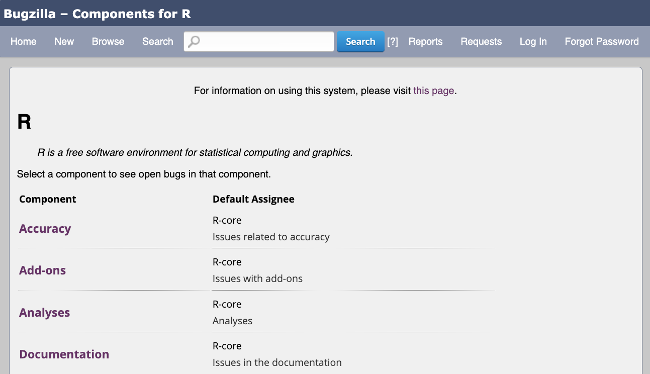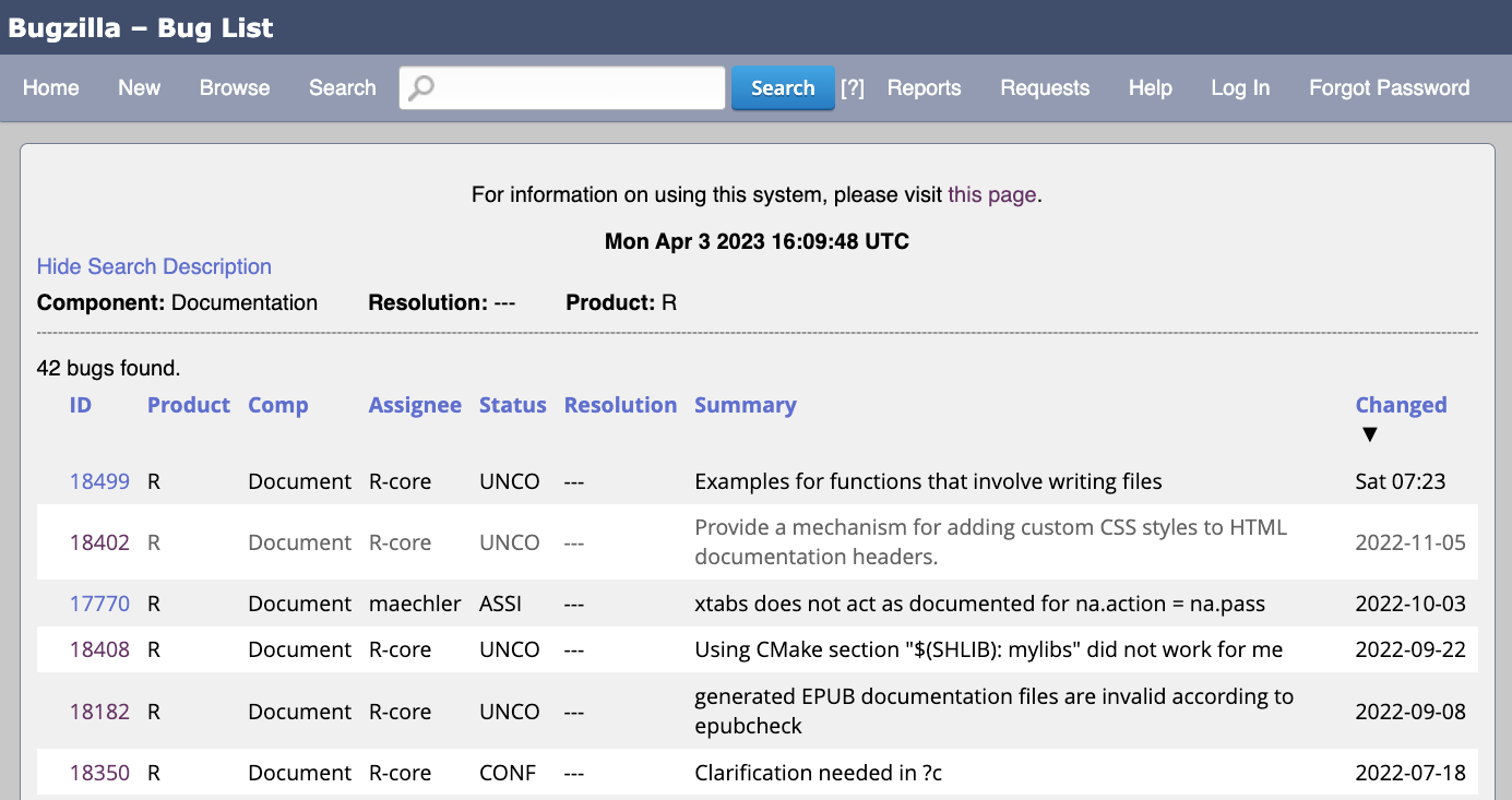 Bugs and wishlist items are tracked through R’s Bugzilla https://bugs.r-project.org