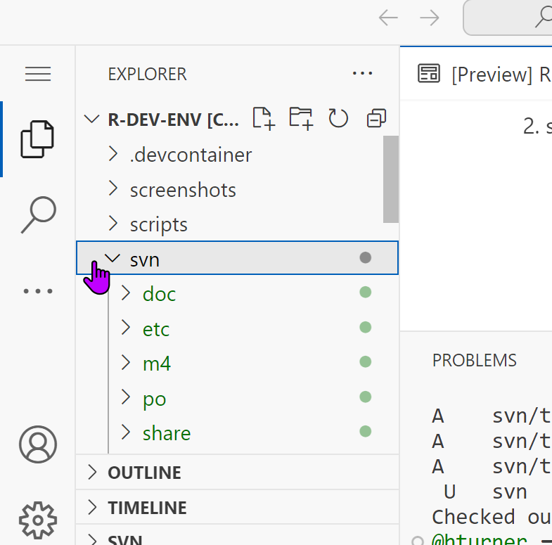 Continuing in VS Code terminal, change to directory with SVN checkout